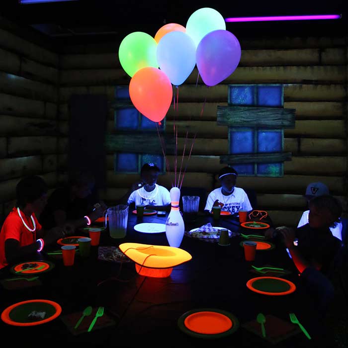 Kids birthday parties to take all the worry and work out of Mom and Dads hands. Bowling, laser tag, and arcade packages along with fun themed parties that include the ultimate NEON experience.....have a birthday party while glowing in the dark!!!